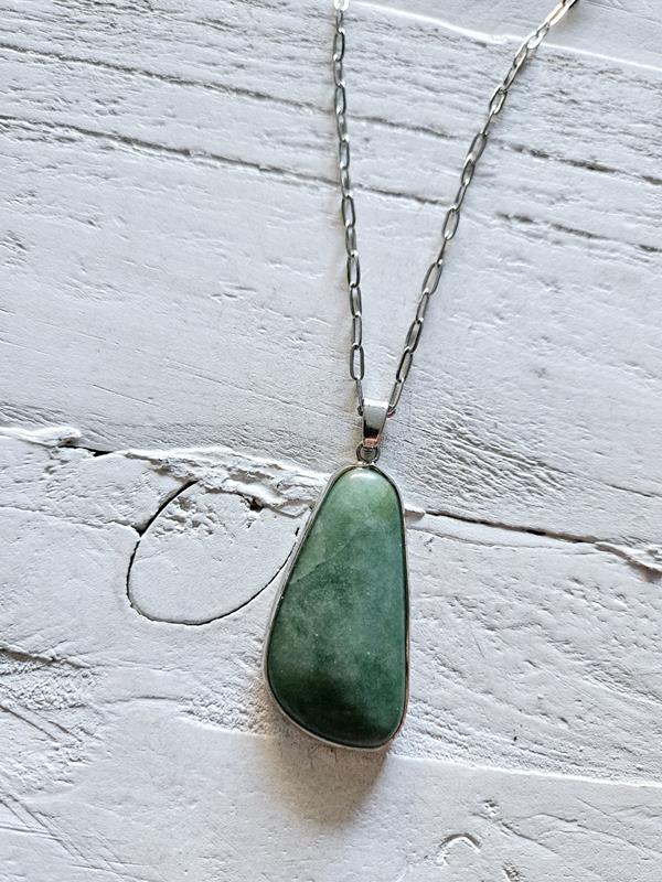 Cadena de acero con colgante de piedra natural de Jade, tamaño de la piedra 4cm aprox. Largo ajustable.