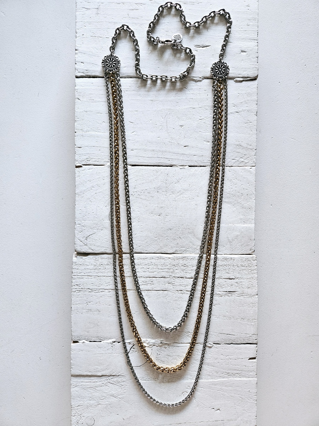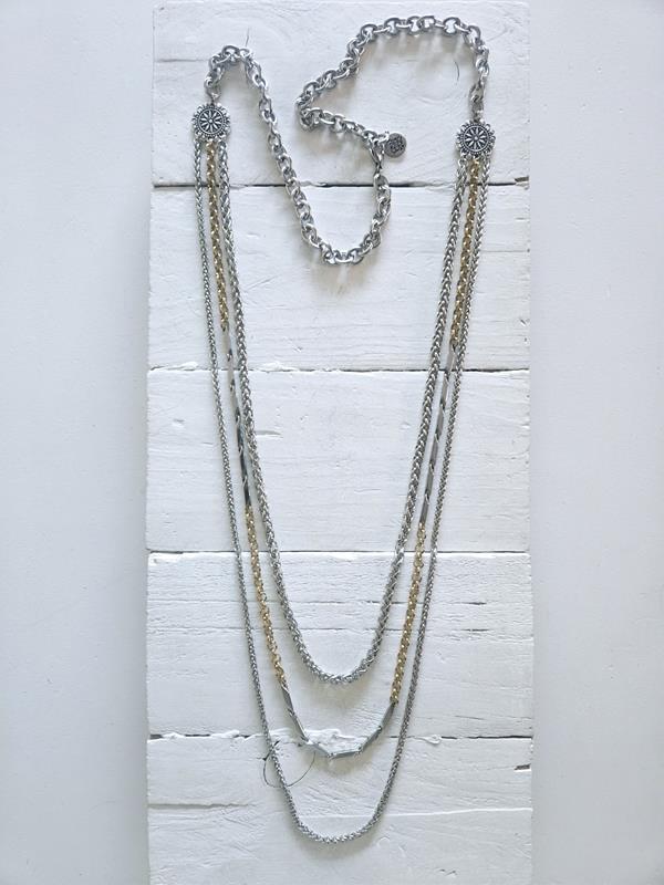 Collar multi cadenas en acero mezclado en dorado y plateado. Largo ajustable.
