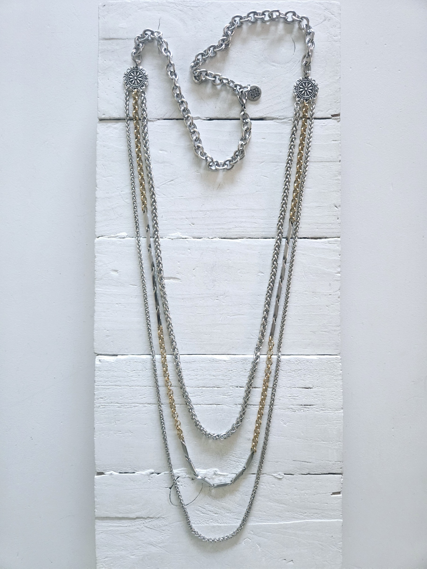 Collar multi cadenas en acero mezclado en dorado y plata. Largo ajustable.