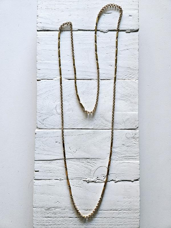 Collar de cadena de eslabones de acero dorado combinada, posibilidad de dos vueltas. Polivalente y muy combinable